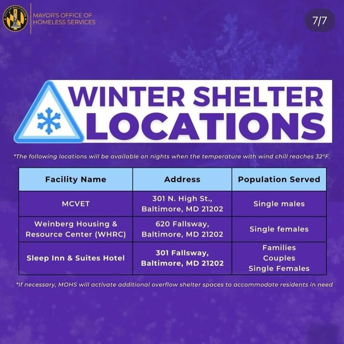 Winter Shelter & Code Purple Information | Baltimore Connect